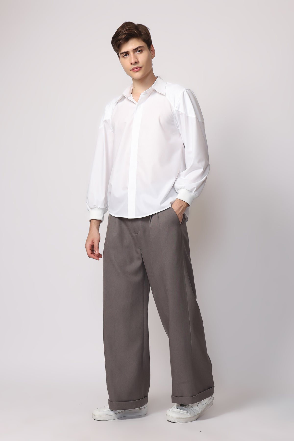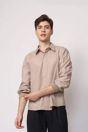 Uniqueness : This shirt combines a classic collared design with a modern twist. Its unique ribbed cuffs add a sporty yet relaxed touch, different from standard buttoned sleeves. The neutral beige tone makes it a versatile choice for both casual and semi-formal looks.