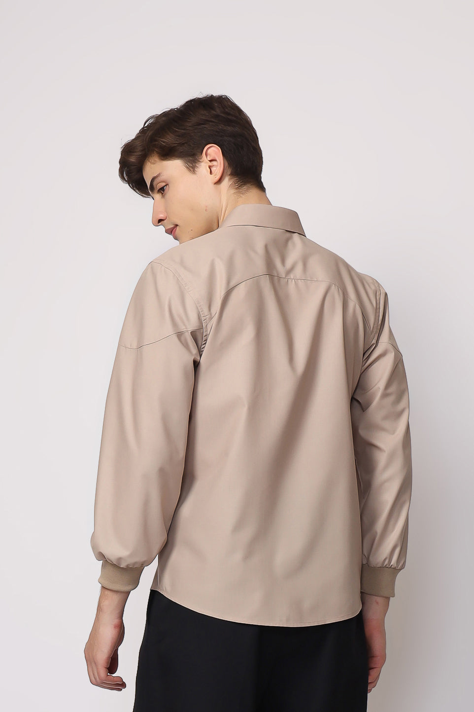 Uniqueness : This shirt combines a classic collared design with a modern twist. Its unique ribbed cuffs add a sporty yet relaxed touch, different from standard buttoned sleeves. The neutral beige tone makes it a versatile choice for both casual and semi-formal looks.