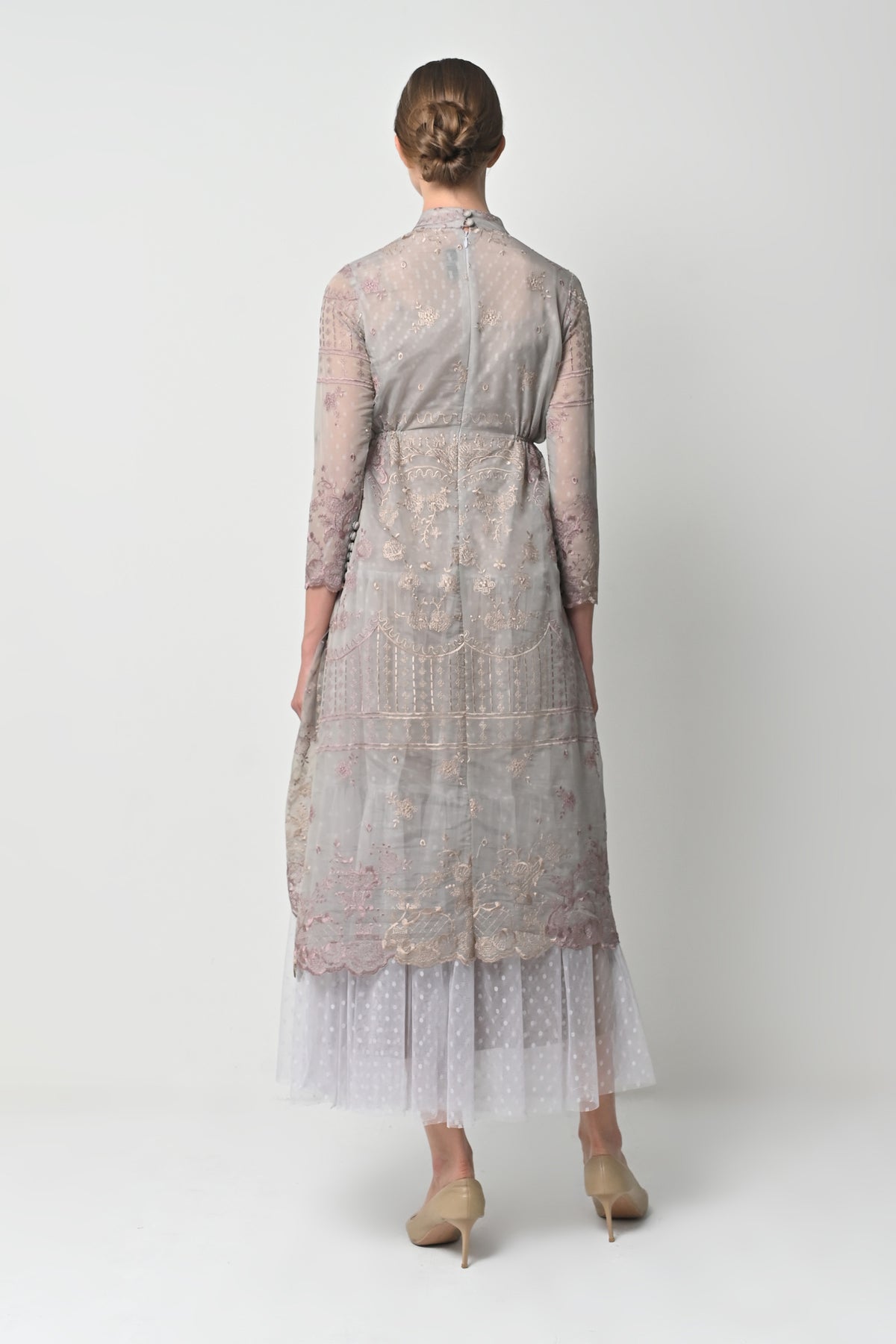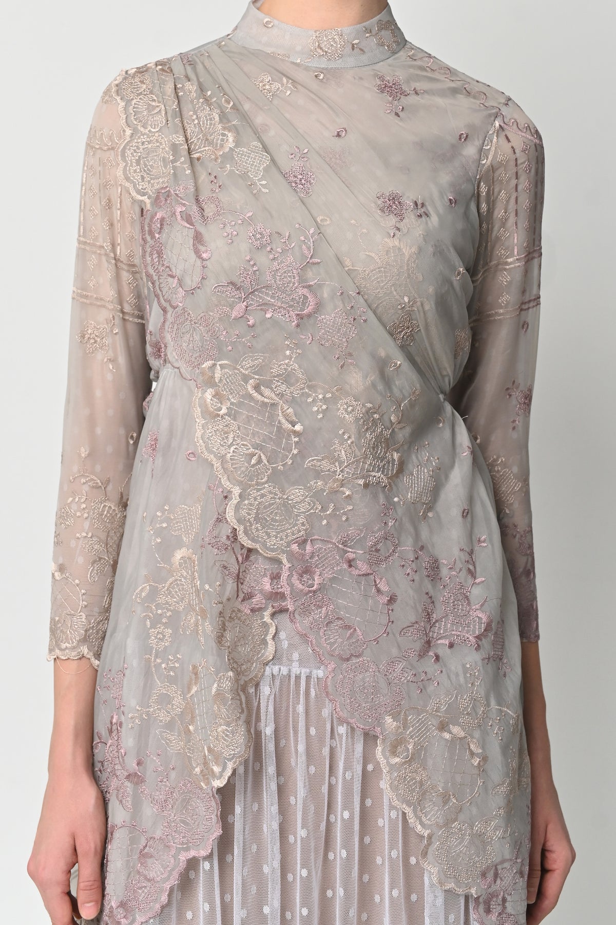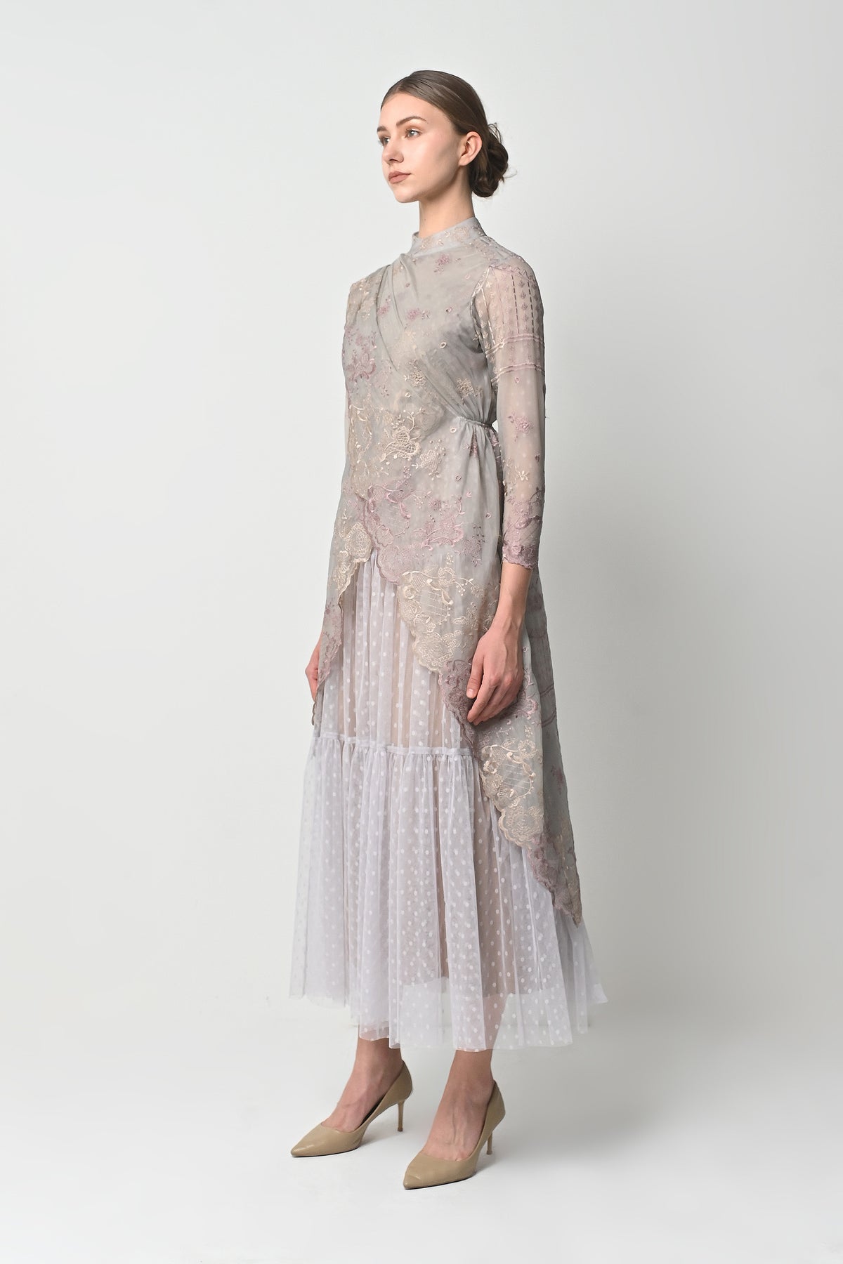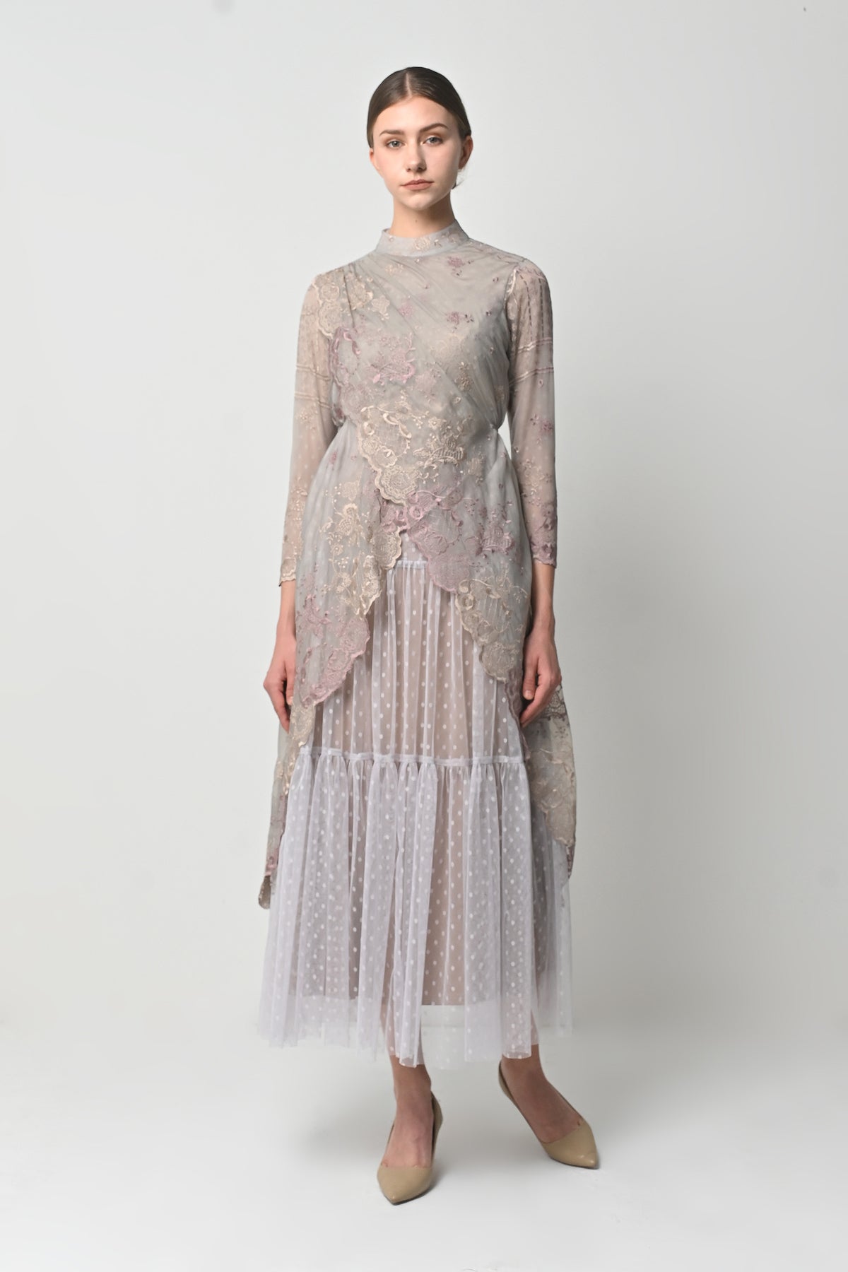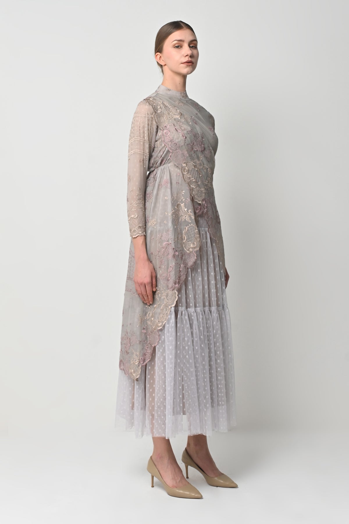 • Combination Light Grey Organza Embroidery and Light Grey Polkadot Tulle